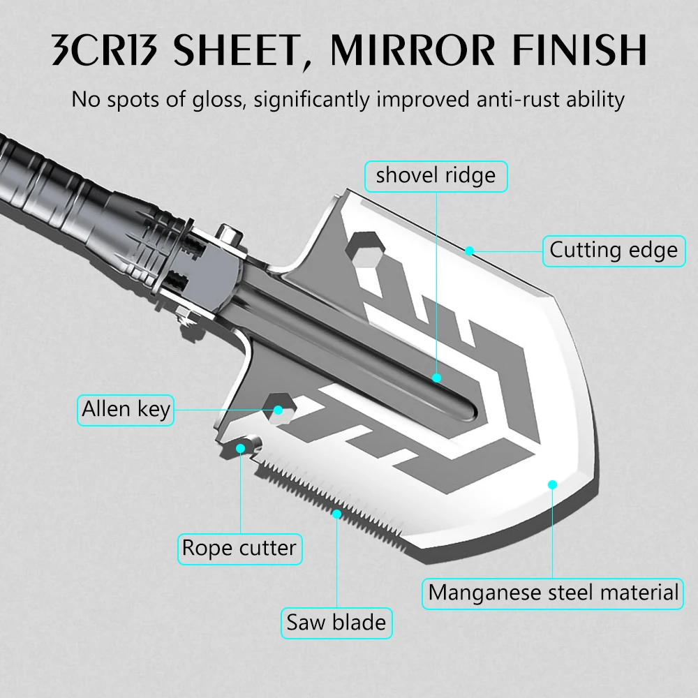 Portable Folding Shovel Multi-function Outdoor Camping Survival Emergency Tool Tactical Shovel Garden Snow Hiking Equipment